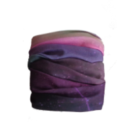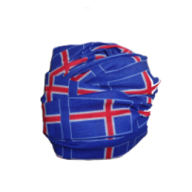 Headscarf with picture of a waterfall surrounded by columnar basalt formations